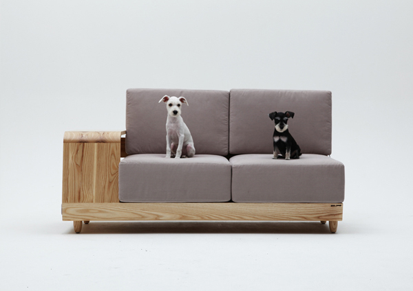 沙发采用原木和海面扪布,设计简洁,和普通沙发的区别在于,在沙发一侧留出宠物的专属小窝。整个沙发都可以成为活动空间,还可以和主人同坐在沙发上看电视。