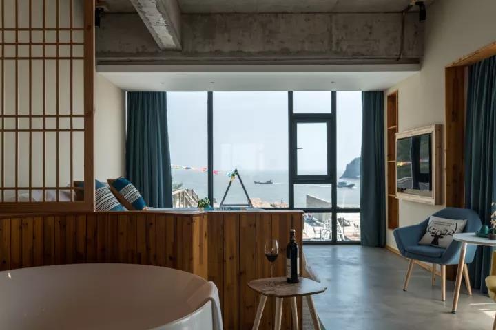 温州左舍聆海精品民宿简约空灵的设计颇具侘寂风,置身于海天之间,将思绪一缕缕梳理,或独坐发呆、或约聊久未见面的好友,一种浓烈的怀旧与温暖感油然而生。民宿看似现代派,却蕴含着中式山水写意意境,移步换景、曲水流觞、亭台阁楼、汀步小径,现代建筑邂逅传统,却毫无违和感,反而平添了一份灵动和精美。海风徐徐,几片云朵挂在天边,海天苍穹、日月星辉,都在盈盈一水间,自然而然产生了对大自然和生命的崇敬感。全景落地玻璃窗,揽通透无边的海天景观入室,抬头便是清澄海景和梦幻的星月水榭庭院。书与景、思绪与情怀,装满一屋的浪漫。围坐于水中央,或茗茶、或畅饮、或篝火,星月生辉、天空静穆、海浪涛涛。设置在3楼的无边泳池与大海的浩瀚、霓霞的多彩、天空的灵寂连城一体,无边无际、无拘无束。