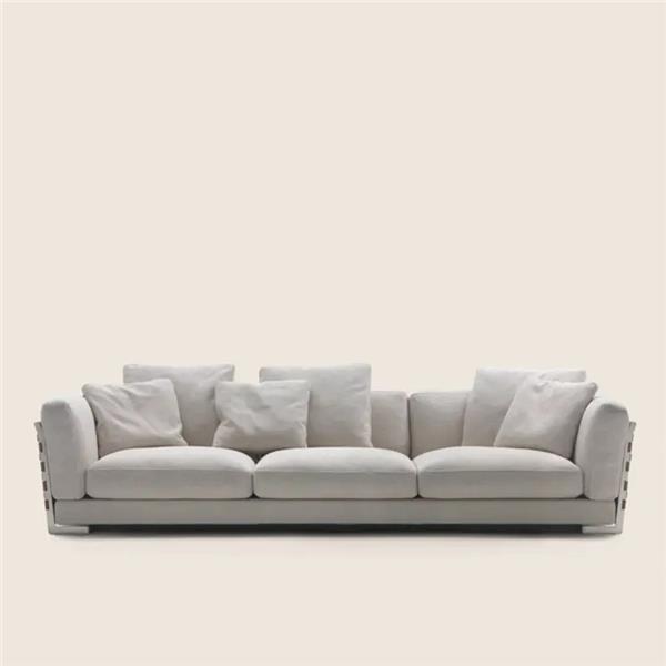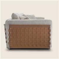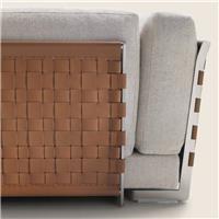 ①高级布艺 ②进口桦木内架 ③东亚海绵 ④304不锈钢+马鞍皮编织 ⑤A级鹅绒