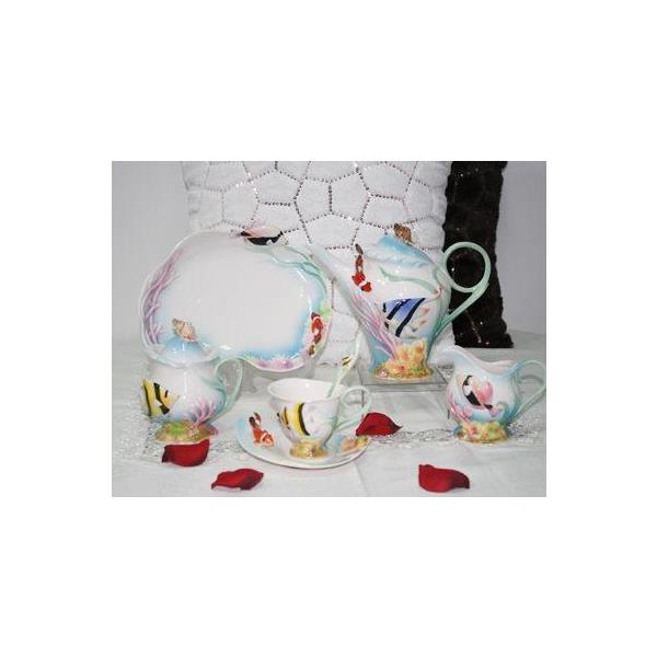经典的、华丽的、清新悠雅的、温馨的16头法兰瓷热带鱼咖啡具