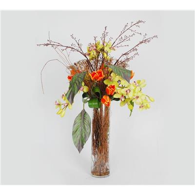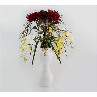 仿真红菊花配兰花插花