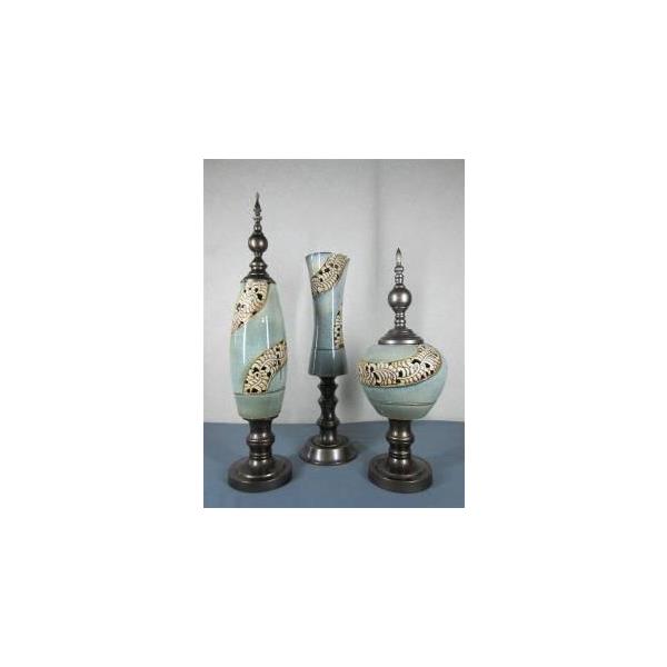 天空蓝布纹彩陶瓷花插3件套